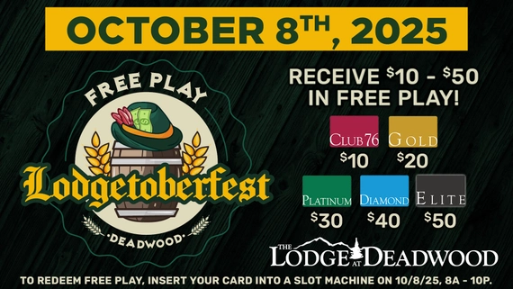 Simply insert your Club 76 Players Card into any slot machine for Free Play on Wednesday, October 8th, 2025. Free Play amounts are awarded based on Tier Level. Visit Club 76 for details.