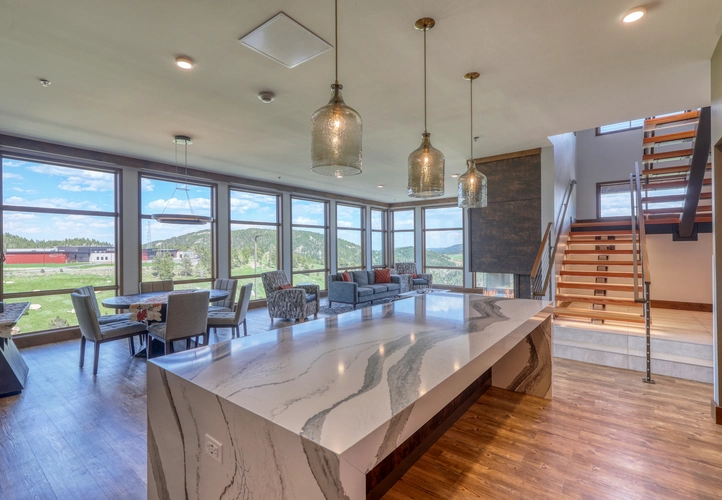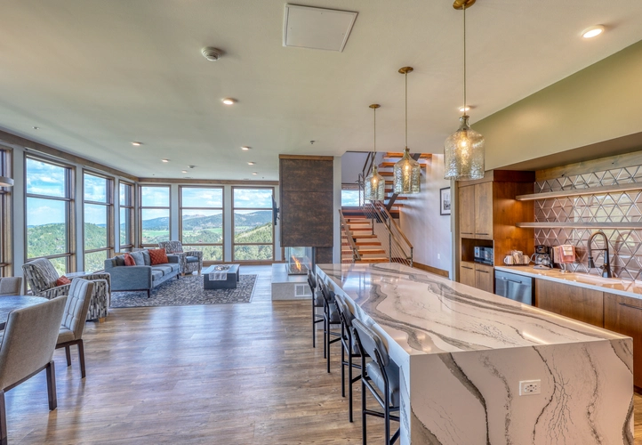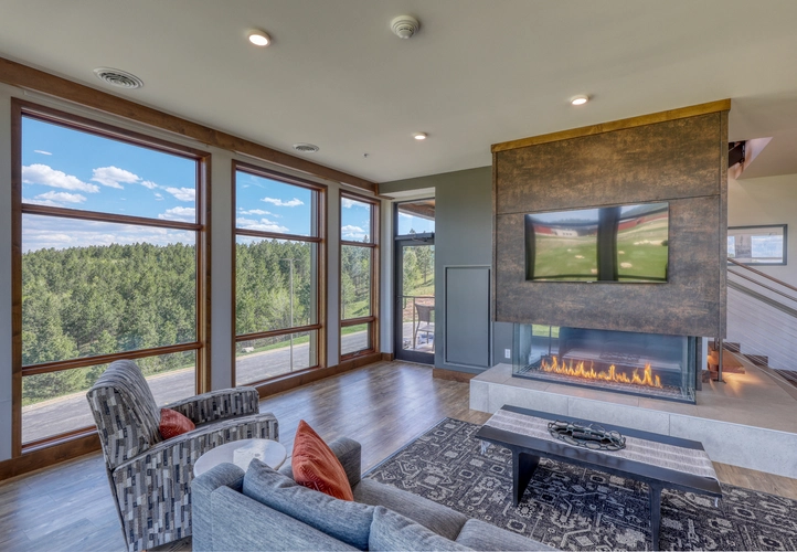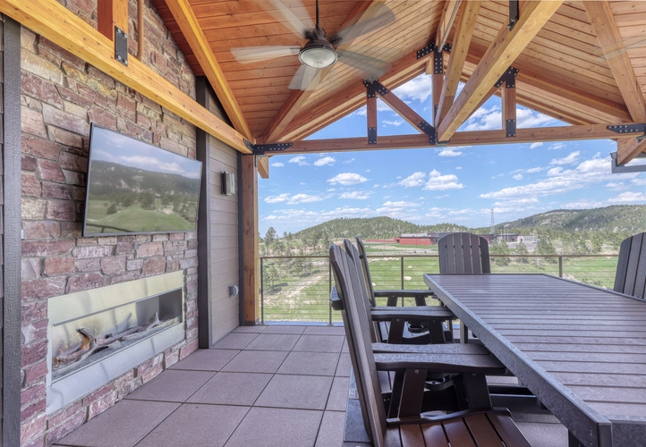 Experience a 300-degree view of the hills of Deadwood Lodge and unwind with friends and family in the fresh mountain air of your expansive deck or by the fire right in your living space.